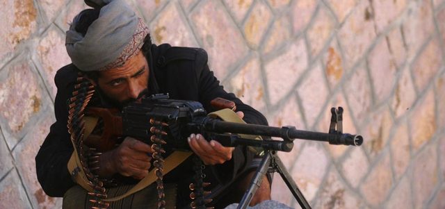 أحد مقاتلي المقاومة الشعبية خلال المواجهات مع الحوثيين في مدينة تعز. أ.ف.ب