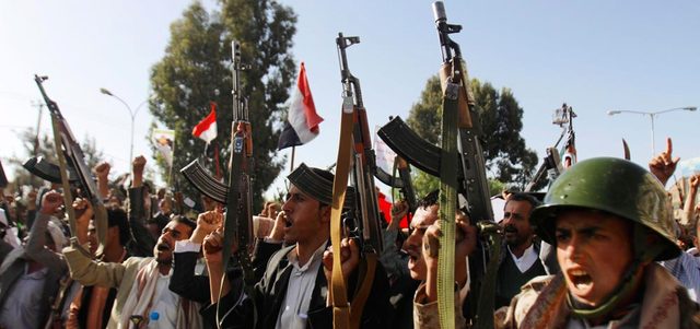 عناصر من متمردي الحوثي في صنعاء ، حيث أطلقت ميليشياتهم صاروخ سكود باتجاه مدينة خميس مشيط السعودية. أرشيفية أ.ب