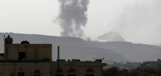 الدخان يتصاعد من مواقع حوثية في صنعاء نتيجة غارات التحالف. أ.ف.ب