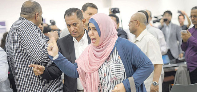 الصحافية ذكرى العراسي التي رشقت الحوثي بالحذاء في جنيف. أرشيفية