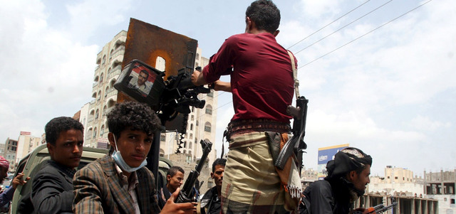 مجموعة من مقاتلي المقاومة الشعبية خلال المواجهات مع المتمردين الحوثيين في تعز. رويترز