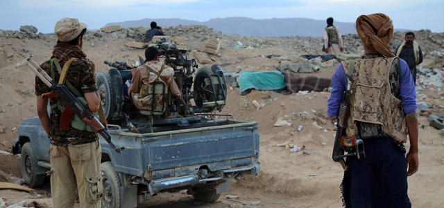 مقاتلون من المقاومة الشعبية خلال العملية التي أطلقت في مأرب ضد المتمردين الحوثيين. أ.ف.ب