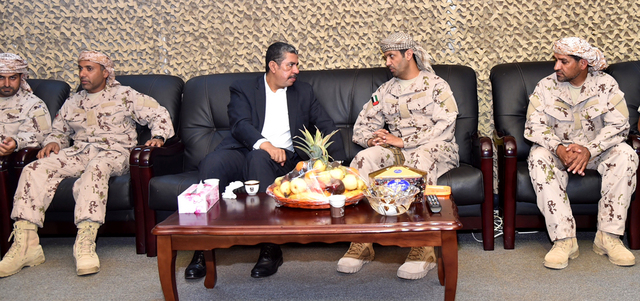 وقدّم بحاح الذي كان في استقباله والوفد المرافق قائد قوة الإمارات وكبار ضباطها، التهاني والتبريكات لقوة الإمارات بمناسبة عيد الأضحى المبارك، داعياً الله العلي القدير أن يعيد هذه المناسبة عليهم بالخير، وأن يحفظهم وأن يسدد رميهم في الدفاع عن الحق ورد الظلم ونصرة الشرعية.
