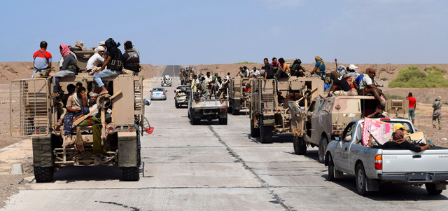 مقاتلون من المقاومة الشعبية في الطريق إلى باب المندب. أ.ف.ب