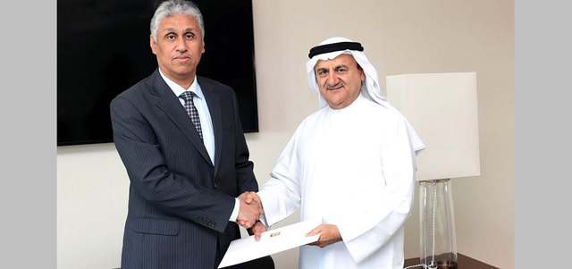 أحمد عبدالرحمن الجرمن يتسلّم نسخة من أوراق اعتماد السفير اليمني لدى الدولة. وام