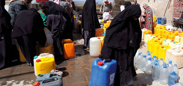 صنعاء تعاني أزمة في مياه الشرب وجميع الخدمات بعد سيطرة الانقلابيين. إي.بي.إيه