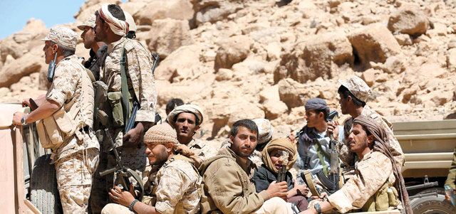 مقاتلون من قوات الشرعية في مديرية نهم التابعة للعاصمة صنعاء. رويترز