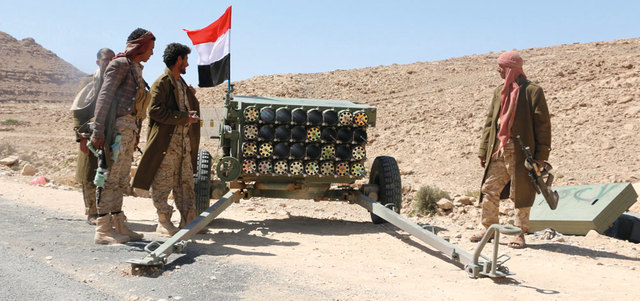 مقاتلون من قوات الشرعية في مديرية نهم بمحافظة صنعاء. إي.بي.إيه