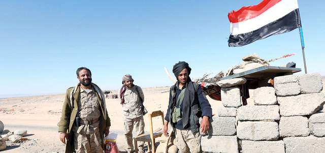 نقطة تفتيش عسكرية لقوات الشرعية في مديرية نهم. رويترز