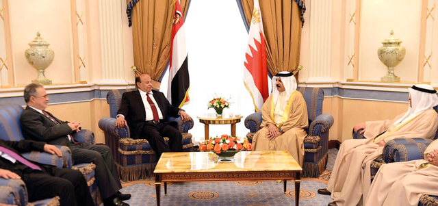 أكد العاهل البحريني الملك حمد بن عيسى آل خليفة، خلال استقباله الرئيس اليمني عبدربه منصور هادي، أن دعم ومساندة دول التحالف العربي لليمن تأتي في إطار الواجب الأخوي ولحماية الأمن القومي العربي في مواجهة القوى المتربصة، فيما أكد هادي أن مواقف دول التحالف العربي في إطار عاصفة الحزم ستظل محل تقدير وعرفان لدى أبناء الشعب اليمني «باعتبارها أسست لمرحلة جديدة من التعاون المثمر وتأصيل أواصر الأخوة والهوية والعقيدة».