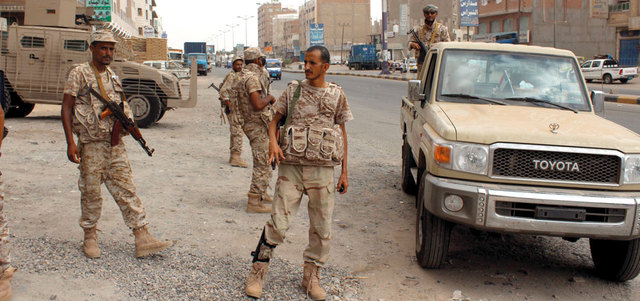 أفراد من الجيش اليمني في حي المنصورة بعدن. إي.بي.إيه