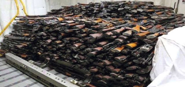 وأوضحت أن الشحنة غير الشرعية تتضمن 1500 رشاش كلاشينكوف إيه كا-47 إس، و200 قاذفة صاروخية مضادة للدروع «آر بي جي» و50 مدفعية رشاشة، وعشرات بنادق دراغونوف التي يستخدمها القناصة، وتسعة صواريخ مضادة للدبابات ومعدات أخرى.