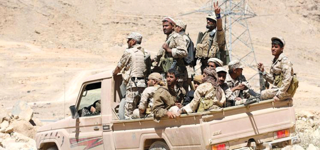 جنود يمنيون قرب فرضة نهم. أرشيفية رويترز