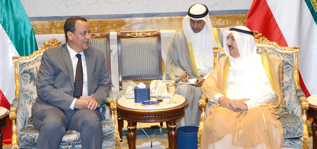 وفي التفاصيل، استقبل أمير الكويت الشيخ صباح الأحمد الجابر الصباح، أمس، مبعوث الأمم المتحدة إلى اليمن إسماعيل ولد الشيخ أحمد. وذكرت وكالة الأنباء الكويتية (كونا) أن أمير الكويت كان قد دعا، أمام القمة الإسلامية، التي عقدت في مدينة إسطنبول التركية، الخميس الماضي، الأطراف اليمنية إلى الاستفادة من الفرصة التاريخية لاتفاق وقف النار، لوضع حد لنزاع دام لسنوات عديدة، معرباً عن الأمل أن يسهم ذلك في إيجاد أجواء تساعد على إنجاح المفاوضات بين الأطراف اليمنية في الكويت، والوصول إلى حل سلمي.