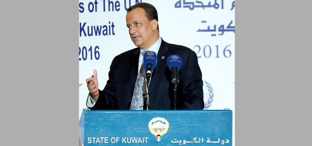ونقلت وكالة الأنباء الكويتية «كونا» عن ولد الشيخ في بيان له أمس ـ عقب لقاءات عقدها مع وفد الحكومة اليمنية ووفد «الحوثيين والمخلوع صالح» وشخصيات دبلوماسية وسياسية ـ أن الإطار العام، الذي وضعته منظمة الأمم المتحدة، يبني على قواسم مشتركة، ويحضر لمسار سياسي استراتيجي شامل يؤمن للمواطنين استقراراً أمنياً وسياسياً.