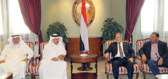 عبدالملك المخلافي خلال لقائه عبداللطيف الزياني، أول من أمس. سبأنت