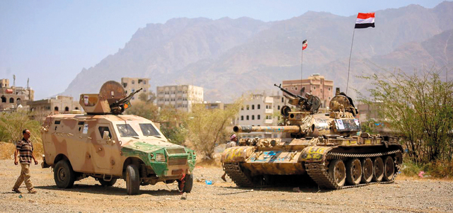 آليتان لقوات الشرعية في مدينة تعز. أ.ف.ب
