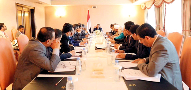 عقد مجلس الوزراء اجتماعه الدوري، أمس، برئاسة أحمد عبيد بن دغر، حيث جدد الأخير خلال الاجتماع موقف الحكومة الحريص على إنجاح مشاورات الكويت، من أجل إحلال السلام الدائم والشامل في اليمن، وأكد أن السلام يبدأ بالانسحاب من المدن، وتسليم سلاح الميليشيات.