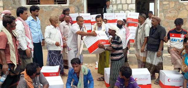 «الهلال الأحمر» توزع مساعدات غذائية غرب جزيرة سقطرى