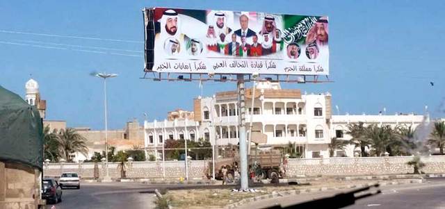 أزاحت حملتا «شكراً مملكة الحزم»، و«شكراً إمارات الخير»، الستار عن لوحتين كبيرتين في أكبر شوارع مدينة المكلا، عاصمة محافظة حضرموت جنوب شرق البلاد، تضمنت إحداهما صورة قادة التحالف العربي، بمن فيها قيادة المملكة العربية السعودية ودولة الإمارات العربية المتحدة، وذلك بعد تحريرها من قبضة تنظيم «القاعدة» الإرهابي منتصف الشهر الماضي، بدعم كبير من دول التحالف العربي.