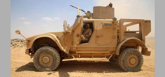 آلية من قوات الشرعية في وضع الاستعداد بمحافظة مأرب. أ.ف.ب