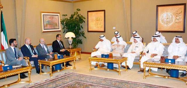 الشيخ صباح خالد الحمد الصباح أثناء اجتماعه مع ولد الشيخ والمخلافي ووفد الميليشيات. كونا