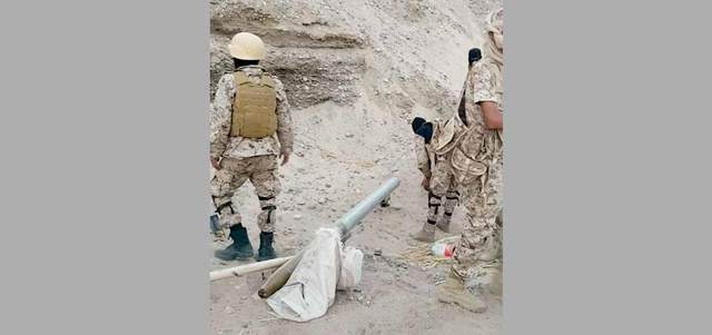 قوات الأمن اليمنية في موقع نصب الصواريخ التي كانت تستهدف المعسكر. الإمارات اليوم