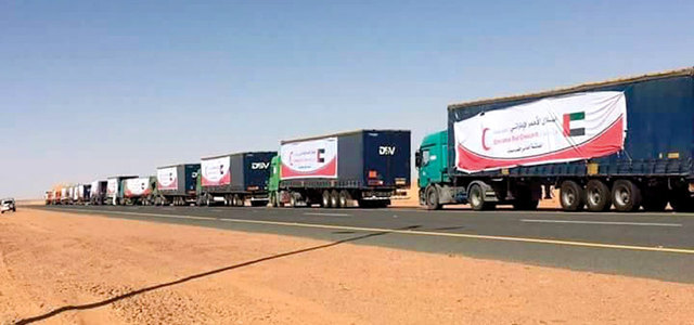 إحدى قوافل الإغاثة الإماراتية في اليمن. أرشيفية