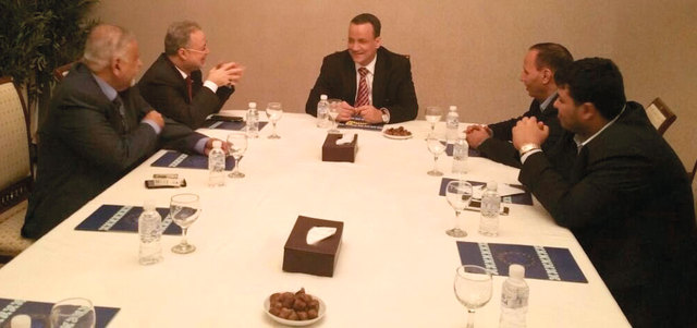 ولد الشيخ خلال لقائه وفد الحكومة اليمنية أول من أمس. الإمارات اليوم