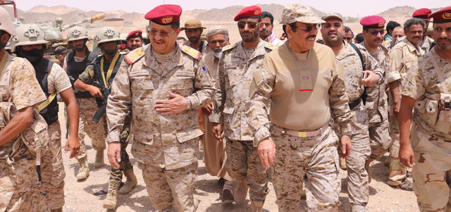 زار نائب الرئيس اليمني الفريق الركن علي محسن صالح الأحمر، أمس، غرفة العمليات المشتركة بجبهة بيحان وعسيلان بمحافظة شبوة، لتدشين خطة استكمال تحرير المحافظة، ولإعلان استئناف عمليات إنتاج وتصدير النفط والغاز اليمني إلى الخارج، في حين حققت قوات الشرعية من الجيش والمقاومة، انتصارات جديدة في صنعاء والجوف وتعز.