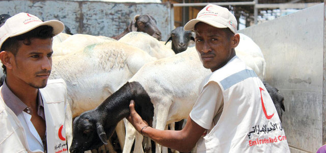 كثفت هيئة الهلال الأحمر الإماراتية، أمس، جهودها الإغاثية والتنموية بالمحافظات والمدن اليمنية، في إطار الدور الإنساني الفاعل الذي تقوم به للتخفيف من معاناة الأشقاء وقبيل أيام من عيد الأضحى المبارك، حيث تنوعت جهود الهيئة ما بين توزيع سلال غذائية وكسوة العيد والأضاحي، بالإضافة إلى تدشين الهيئة مشروع المياه الإسعافي، وشحنت عدداً من مولدات الكهرباء.