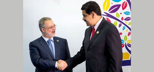 المخلافي (يسار) مع رئيس فنزويلا في قمة عدم الانحياز. إي.بي.إيه