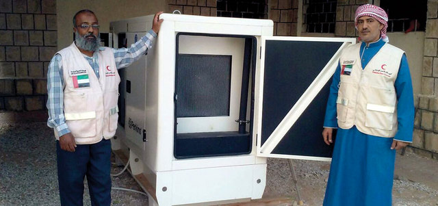 قدمت هيئة الهلال الأحمر الإماراتي، أول من أمس، مولداً كهربائياً إلى مستشفى «إعادة الأمل» في مديرية رماه اليمنية، لمواجهة الانقطاع المتكرر للتيار الكهربائي في المديرية وعموم مديريات وادي وصحراء حضرموت.