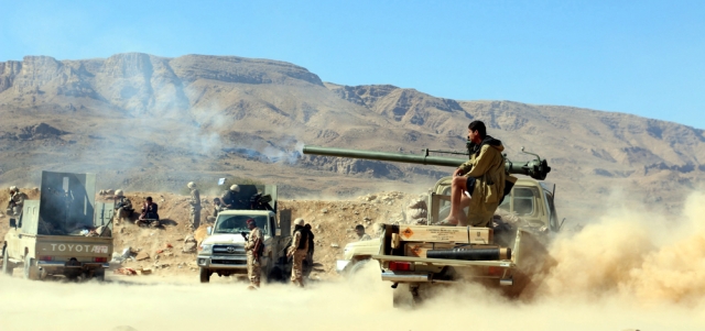 مقاتلون من قوات الشرعية خلال معارك مع الميليشيات في مأرب بالقرب من صنعاء. أرشيفية