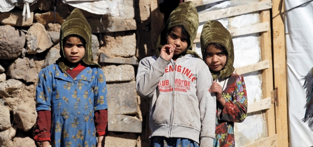 أطفال يعانون النزوح والفقر في محافظة عمران التي تخضع لسيطرة الانقلابيين. أرشيفية