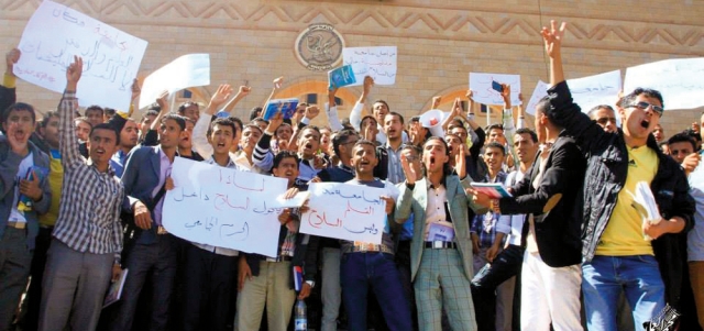 تظاهرة طلابية ضد الميليشيات في جامعة صنعاء. أرشيفية