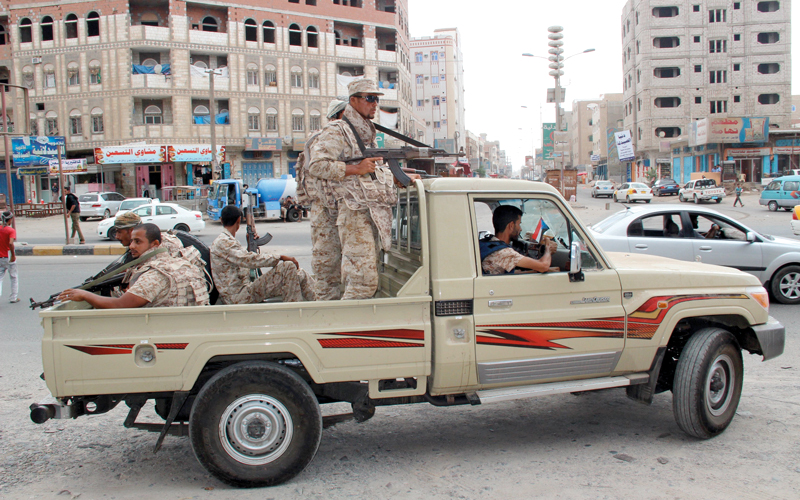 قوة من الشرعية اليمنية في حي المنصورة بعدن. رويترز