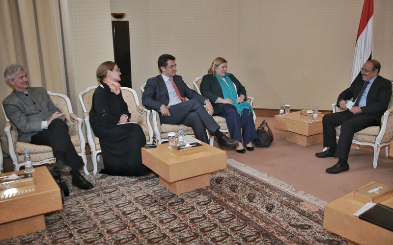 كما أشاد الأحمر بالعلاقات الثنائية بين اليمن ودول الاتحاد الأوروبي، مثمناً مساندة الاتحاد الأوروبي ووقوفه إلى جانب أبناء اليمن وشرعيته الدستورية، وإسهامات تلك الدول في الكثير من المحافل والقرارات الدولية ودعمها المستمر لليمن في مجال الاقتصاد والتنمية والإغاثة.