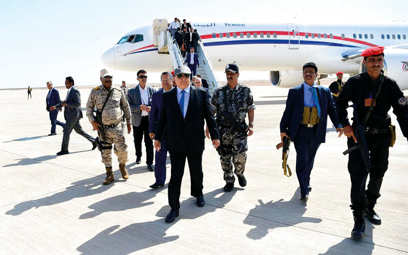 هادي خلال وصوله إلى المكلا لتفقد أوضاع حضرموت. سبأنت