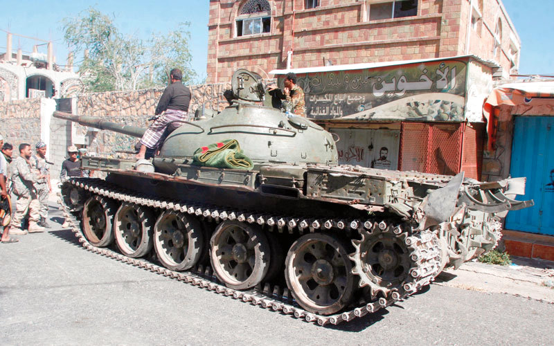 دبابة تابعة لقوات الشرعية جنوب مدينة تعز. أ.ف.ب