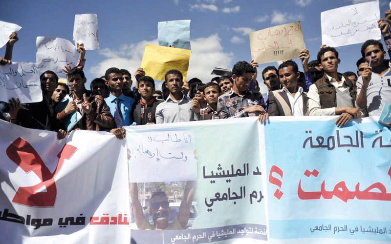 تظاهرة ضد سيطرة الميليشيات على جامعة صنعاء. أرشيفية