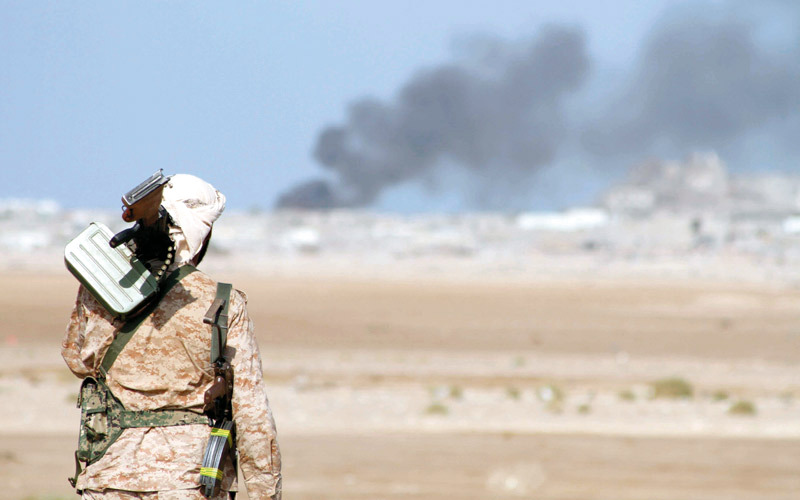 مقاتل من قوات الشرعية خلال اشتباكات مع الميليشيات في ذوباب. أ.ف.ب