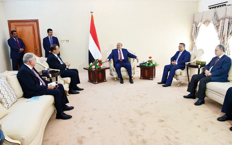 وكان ولد الشيخ وصل إلى عدن للقاء هادي، في إطار الجهود الدولية لإعادة إحياء مسار المفاوضات السياسية، والخروج بحل سلمي ينهي النزاع في اليمن. وأوضح هادي خلال اللقاء أن ملاحظات الحكومة التي أبدتها تجاه مشروع خريطة الطريق، والتي سلمت سلفاً لولد الشيخ خلال زيارته السابقة لعدن، تمثل خياراً جوهرياً لعودة قطار السلام إلى مساره الصحيح، رغم إدراكها والمجتمع الدولي لممارسات الانقلابيين، التي لا تشير إلى فكر يحمل السلام. ووضع هادي أمام المبعوث الأممي صورة موجزة، تؤكد وتجدد رغبة الشعب اليمني وشرعيته الدستورية في تحقيق السلام، وإرساء معالمه عبر مواقفه الواضحة، وتجاوبه الدائم مع أسس ومنطلقات السلام المرتكزة على القرارات الأممية، وفي مقدمتها القرار 2216 والمبادرة الخليجية ومخرجات الحوار الوطني.