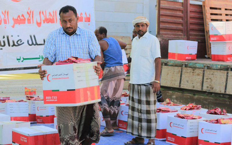«الهلال الأحمر» الإماراتي توزع المساعدات على سكان رأس العارة وباب المندب