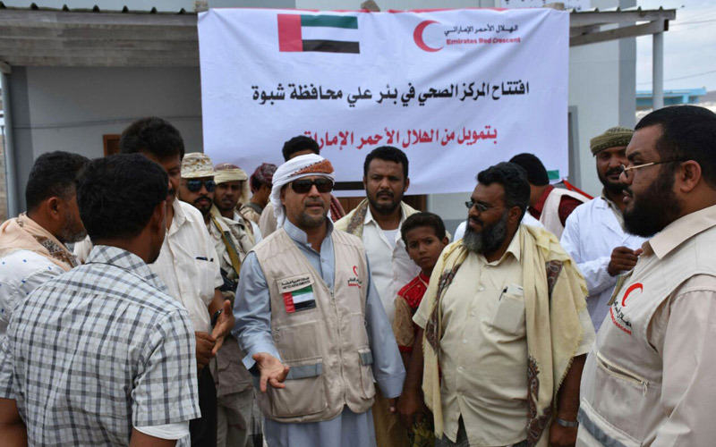 افتتح وفد من هيئة الهلال الأحمر الإماراتي، أمس، مركزاً صحياً في منطقة بئر علي التابعة لمديرية رضوم بمحافظة شبوة في اليمن الشقيق، بعد استكمال أعمال الصيانة والترميم، وبناء قسم خاص بالطوارئ، وتزويده بكامل التجهيزات والأدوات الصحية بتمويل من الهيئة.