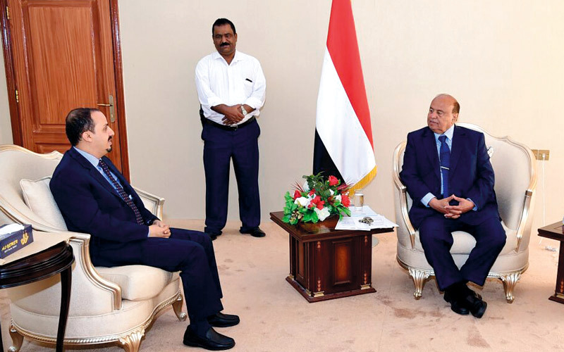 من جهة أخرى، استقبل هادي، أمس، في عدن، وزير الإعلام، معمر الإرياني، لمناقشة أداء المؤسسات الإعلامية الرسمية، وتطوير رسالتها بما يواكب المستجدات على الساحة الوطنية، ويسلط الضوء على الانتصارات العظيمة التي يحققها الجيش والمقاومة الشعبية على فلول الميليشيات.