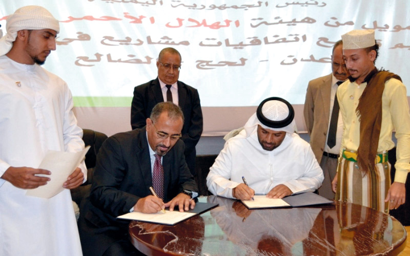 شهدت العاصمة اليمنية المؤقتة عدن، أمس، توقيع اتفاقية لتمويل عدد من المشروعات الاستراتيجية ذات الطابع التنموي في كل من عدن لحج والضالع، التي تمولها هيئة الهلال الأحمر الإماراتي، بالمشاركة مع السلطات المحلية في المحافظات المستهدفة، وذلك ضمن فعاليات عام الخير 2017 لدولة الإمارات العربية المتحدة.
