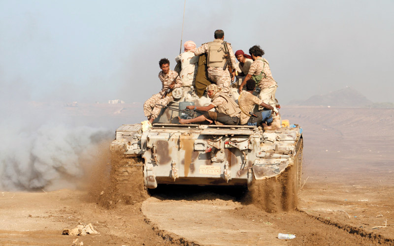 قوة من الشرعية خلال دورية في منطقة ذوباب شمال باب المندب. أ.ف.ب