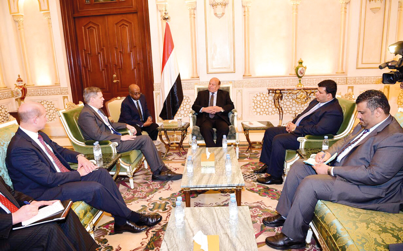 وخلال اللقاء، أكد هادي أن الشعب اليمني الذي قدم التضحيات بدعم وإسناد من قوات التحالف العربي، جدير بالحياة الآمنة والعيش الكريم بعيداً عن الأزمات والمعاناة، ووصولاً إلى السلام الذي يستحقه.