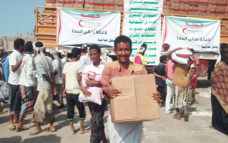 قدمت هيئة الهلال الأحمر الإماراتية، مساعدات غذائية وإغاثية عاجلة لسكان مدينة المخاء، في إطار دورها الإنساني المتواصل على الساحة اليمنية، حيث تم توزيع 3000 سلة، تتكوّن من المواد الأساسية الغذائية، التي تساعد على التخفيف من قسوة الحياة، على السكان الذين عبروا عن شكرهم وتقديرهم لدولة الإمارات قيادة وحكومة وشعباً، ولـ«هيئة الهلال» على دورها الكبير في تطبيع الحياة.وبهذه المساعدات الجديدة، فقد بلغ عدد السلال الغذائية لمدينة المخاء والساحل الغربي معاً 27 ألف سلة.